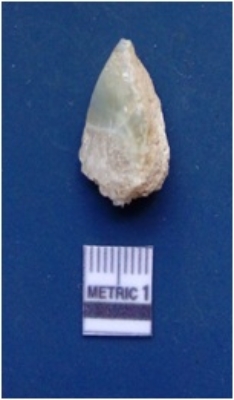| Description / विवरण | It is a chalcedony fragment, translucent in appearance. Heat treatment done on the fragment. Flake scars visible on the surface with ripples on them. Sharp edges and pointed ends. Cortex on partly one side of the surface. |
