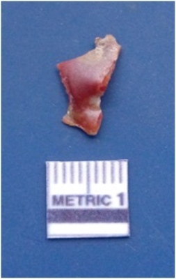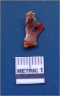 | Description / विवरण | It is a jasper fragment. Having prominent flake scars on the surface with ripples visible on it. Heat treatment done on it. It has sharp lateral margins with pointed ends. The fragment has positive bulb of percussion with erailuer feature. |
