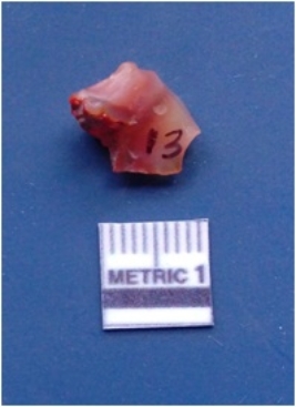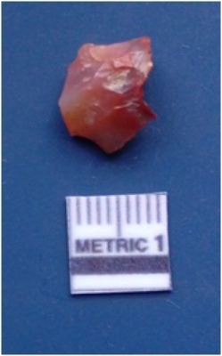 | Description / विवरण | It is a chalcedony fragment. Having prominent flake scars on the surface with ripples visible on it. Heat treatment done on it. It has sharp lateral margins with pointed ends. The fragment has positive bulb of percussion with erailuer feature. |