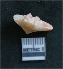 | Description / विवरण | It is a quartz flake. Very cryptocrystalline. Flakes scar on the surface with ripples on it. |