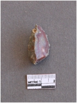 | Description / विवरण | It s a jasper piece with sharp edges and striking platform on the proximal end. |