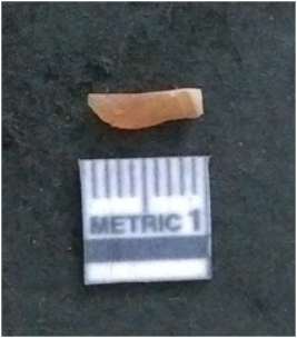 | Description / विवरण | It is a quartz flake. Very cryptocrystalline. Flakes scar on the surface with ripples on it. |