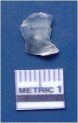 | Description / विवरण | It is a quartz fragment, having flake scars on the surface with bulb on the ventral side having sharp edges. Translucent in appearance. |