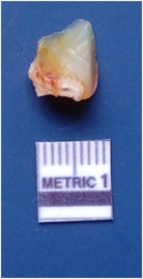 | Description / विवरण | It is a chalcedony fragment, translucent in appearance. Prominent flake scars on the surface with ripples visible on it forming sharp edges. |