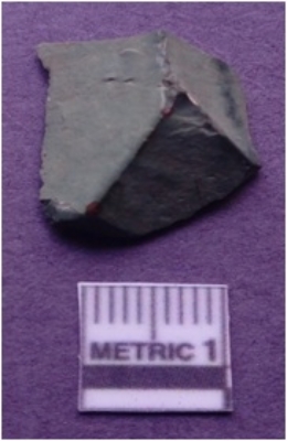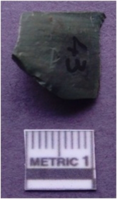 | Description / विवरण | It is a chert fragment having bulb of percussion on the ventral side. Flake scars forming sharp edges and pointed ends. Greenish in colour. |