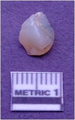 | Description / विवरण | It is a chalcedony fragment, having multiple flake ridges with ripples on the surface. |