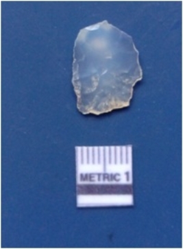 | Description / विवरण | It is a quartz fragment, flake scars on the surface. Translucent in appearance. Sharp lateral margins. |