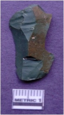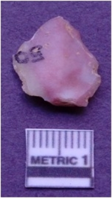 | Description / विवरण | It is a chert fragment having bulb of percussion on the ventral side. Flake scars on the surface. It has sharp edges and pointed ends. |