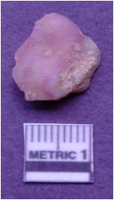 | Description / विवरण | It is a chert flake having flake scars with ripples visible on the surface. Flaked chipped of to form the end of the fragment. |