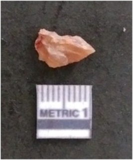 | Description / विवरण | It is a quartz flake. Very cryptocrystalline. Flakes scar on the surface with ripples on it. |