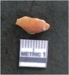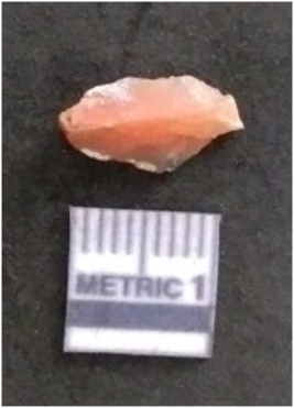 | Description / विवरण | It is a quartz flake. Very cryptocrystalline. Flakes scar on the surface with ripples on it. |
