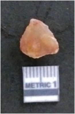 | Description / विवरण | It is a quartz flake. Very cryptocrystalline. Flakes scar on the surface with ripples on it. |