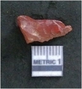 | Description / विवरण | It is a quartz flake. Very cryptocrystalline. Flakes scar on the surface with ripples on it. |
