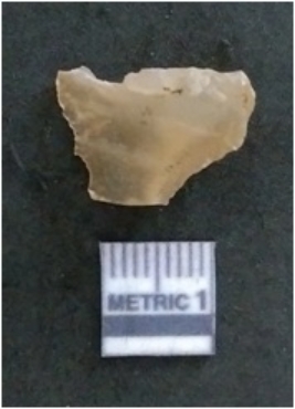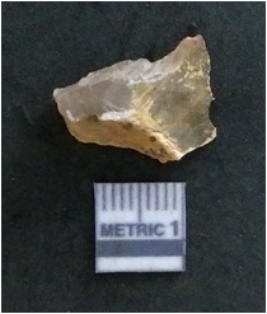 | Description / विवरण | It is a chalcedony flake, with a bulb of percussion on the ventral side. Cortex on one end. |