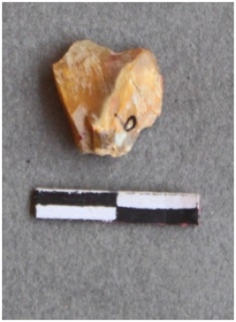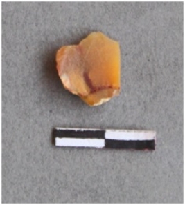 | Description / विवरण | Quartz piece is white with sharp edges. it shows a dark cortex on both sides with siliceous deposition between the cortex layer. |