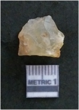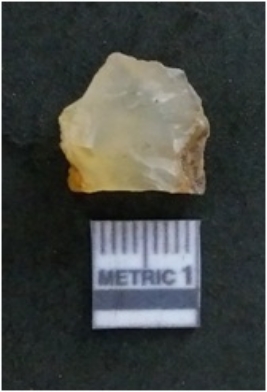 | Description / विवरण | It is a chalcedony flake, with a bulb of percussion on the ventral side. Cortex on one end. |