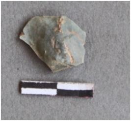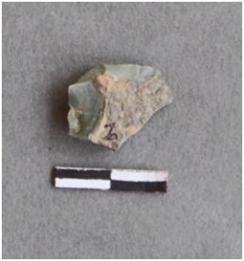| Description / विवरण | The chert fragment is multicolored, red, with ferric impurities green with cupric impurities. |