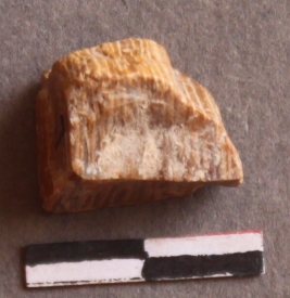 | Description / विवरण | It is a woody agate nodule. Cortex on either side of the fragment. Flake scars on the surface. Striking platform on the proximal end of the flake. |