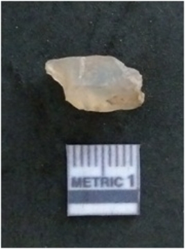 | Description / विवरण | It is a chalcedony flake, with a bulb of percussion on the ventral side. Cortex on one end. |