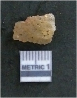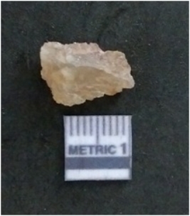 | Description / विवरण | It is a chalcedony flake, with a bulb of percussion on the ventral side. Cortex on one end. |