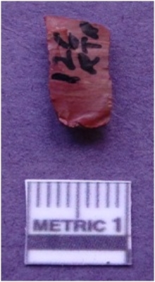 | Description / विवरण | It is a banded hematite, rectangular in shape. Flake removal scars on the surface with ripples on them. Brownish in color. |