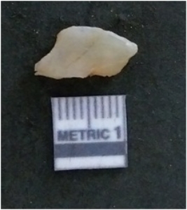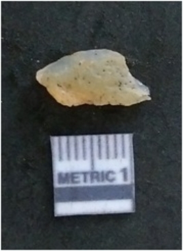 | Description / विवरण | It is a chalcedony flake, with a bulb of percussion on the ventral side. Cortex on one end. |