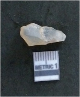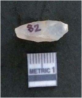 | Description / विवरण | It is a chalcedony flake, with a bulb of percussion on the ventral side. Cortex on one end. |