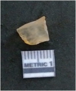 | Description / विवरण | It is a chalcedony flake, with a bulb of percussion on the ventral side. Cortex on one end. |