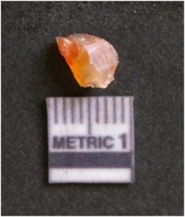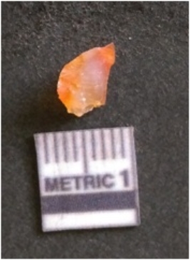 | Description / विवरण | The chalcedony flake is pale in color and translucent in appearance. The piece has s harp flaked ends and a bulbous end due to flaking. The flake has a crypto-crystalline silica matrix with reddish lint caused due to heat. |