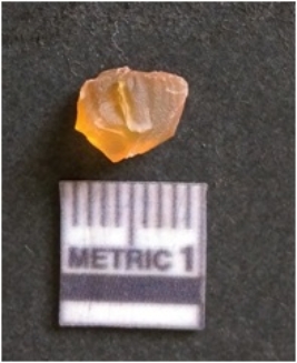 | Description / विवरण | The chalcedony flake is pale in color and translucent in appearance. The piece has s harp flaked ends and a bulbous end due to flaking. The flake has a crypto-crystalline silica matrix with reddish lint caused due to heat. |