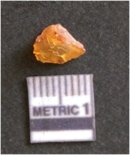 | Description / विवरण | The chalcedony flake is pale in color and translucent in appearance. The piece has s harp flaked ends and a bulbous end due to flaking. The flake has a crypto-crystalline silica matrix with reddish lint caused due to heat. |