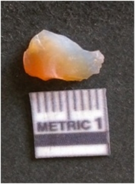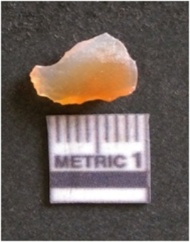 | Description / विवरण | The chalcedony flake is pale in color and translucent in appearance. The piece has s harp flaked ends and a bulbous end due to flaking. The flake has a crypto-crystalline silica matrix with reddish lint caused due to heat. |