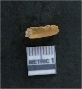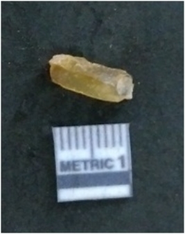 | Description / विवरण | It is a chalcedony flake, with a bulb of percussion on the ventral side. Cortex on one end. |