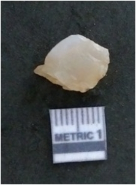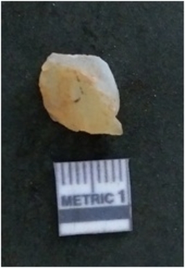 | Description / विवरण | It is a chalcedony flake, with a bulb of percussion on the ventral side. Cortex on one end. |