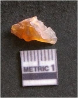 | Description / विवरण | The chalcedony flake is pale in color and translucent in appearance. The piece has s harp flaked ends and a bulbous end due to flaking. The flake has a crypto-crystalline silica matrix with reddish lint caused due to heat. |