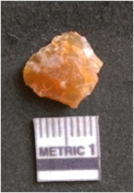 | Description / विवरण | The chalcedony flake is pale in color and translucent in appearance. The piece has s harp flaked ends and a bulbous end due to flaking. The flake has a crypto-crystalline silica matrix with reddish lint caused due to heat. |