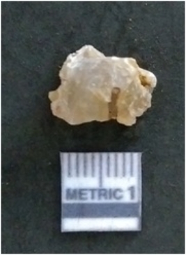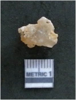 | Description / विवरण | It is a chalcedony flake, with a bulb of percussion on the ventral side. Cortex on one end. |
