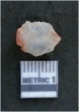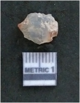 | Description / विवरण | It is a chalcedony flake, with a bulb of percussion on the ventral side. Cortex on one end. |
