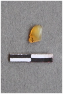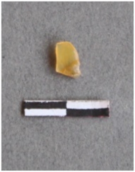 | Description / विवरण | It is a small chalcedony flake, with a bulb of percussion on the ventral side. |