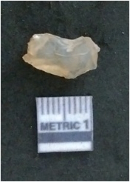 | Description / विवरण | It is a chalcedony flake, with a bulb of percussion on the ventral side. Cortex on one end. |