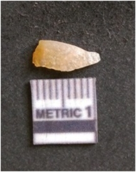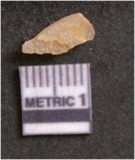 | Description / विवरण | The chalcedony flake is pale in color and translucent in appearance. The piece has s harp flaked ends and a bulbous end due to flaking. The flake has a crypto-crystalline silica matrix with reddish lint caused due to heat. |