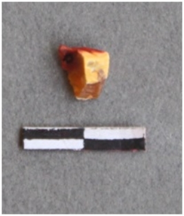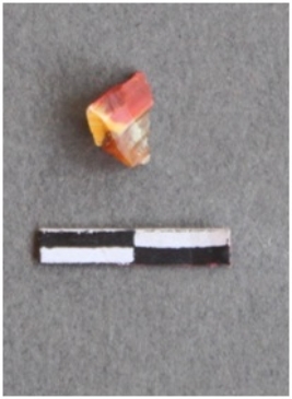 | Description / विवरण | It is a carnelian flake. It is orangish in color, flake edges on the surface with ripple on it due to heavy percussion. |