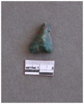 | Description / विवरण | The fragment has a point and a ridge due to flaking. |