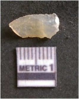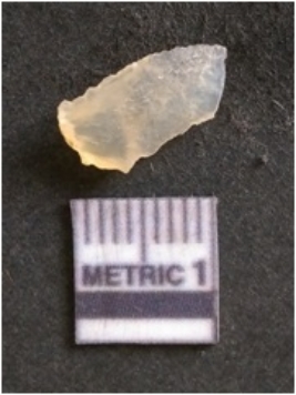 | Description / विवरण | The chalcedony flake is pale in color and translucent in appearance. The piece has s harp flaked ends and a bulbous end due to flaking. The flake has a crypto-crystalline silica matrix with reddish lint caused due to heat. |
