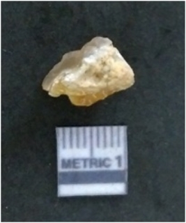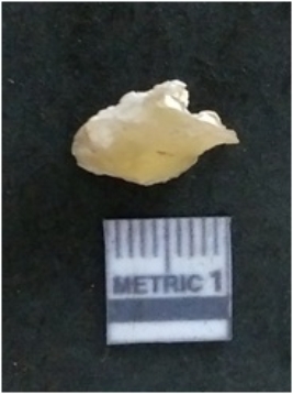 | Description / विवरण | It is a chalcedony flake, with a bulb of percussion on the ventral side. Cortex on one end. |