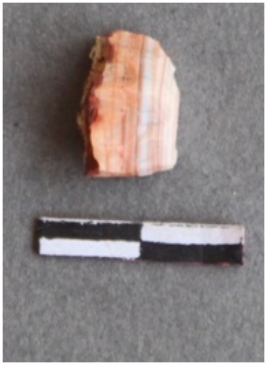 | Description / विवरण | It is a jasper flake with sharp edges and striking platform on the proximal end. Flakes scars on the surface. |