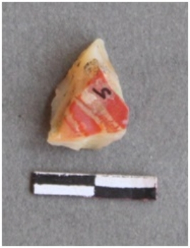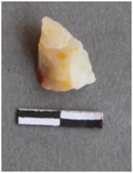 | Description / विवरण | It is chalcedony fragment. With sharp edges and pointed ends. Surface has ferrous impurities. |