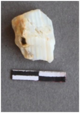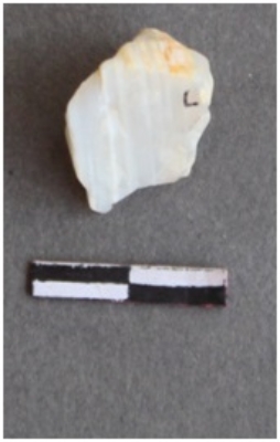 | Description / विवरण | It is a banded chalcedony flake. Cortex on one end. Whitish in color. |