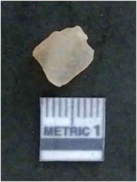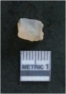 | Description / विवरण | It is a chalcedony flake, with a bulb of percussion on the ventral side. Cortex on one end. |