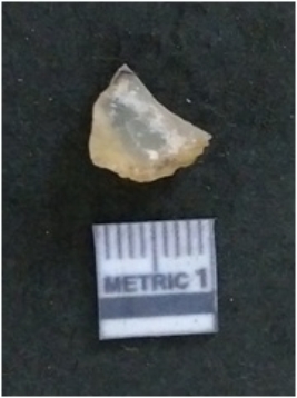 | Description / विवरण | It is a chalcedony flake, with a bulb of percussion on the ventral side. Cortex on one end. |